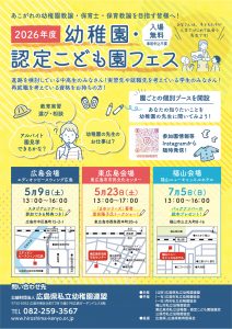 (公財)広島県私立幼稚園連盟が、幼稚園・認定こども園フェスを、広島、東広島、福山の3会場で開催します。